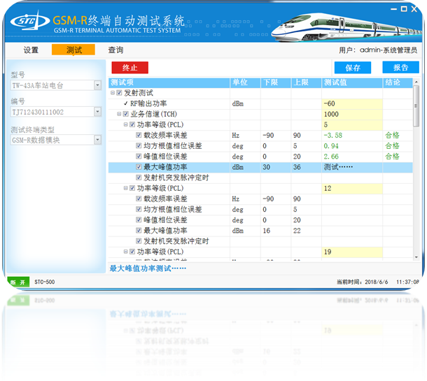 系統符合鐵路總公司規定的GSM-R終端測試要求,同時支持語音模塊/數據模塊的測試,并內置所有發射機及接收機相關測試項目,使用戶對測試要求及規定更加了解