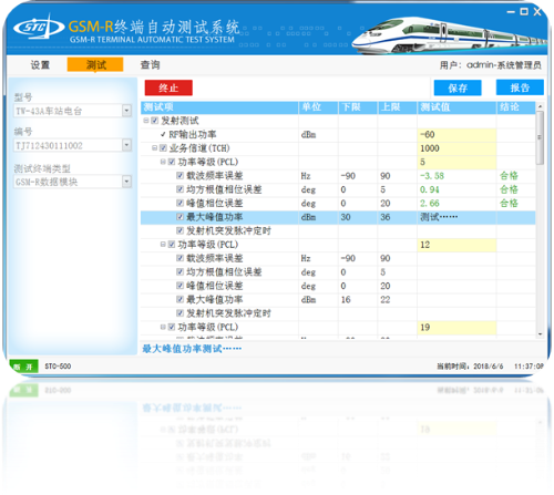 系統根據鐵路實際測試需求,內置各項所需測試指標,但同時用戶可以根據測試需要,自行選擇相關測試指標,同時系統內置測試門限,自行判斷測試結果是否合格