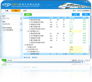 該系統可以完成目前鐵路GSM-R/GPRS終端設備發射機和接收機射頻指標的全自動檢測,測試精度和準確度均達到業內良好水平,該系統具有測試信息和設備信息電子臺帳管理功能;對測試結果進行自動合格性判斷,并形成電子臺帳;測試結果可下載并打印;可記錄所測電臺的型號、編號、測試人和測試日期;具有對測試記錄存儲和查閱的功能,可幫助現場測試人員輕松完成定期指標檢測及數據記錄工作。